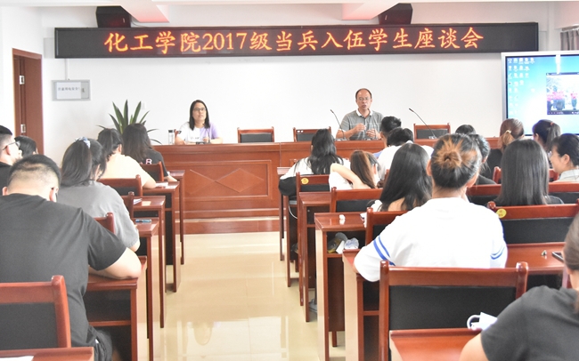 “强国需要强军,强军必先强兵”。为加强培养我院现代化建设人才,对祖国军队建设做出贡献,9月9日上午10时30分,化学化工学院于至安楼(北)602会议室开展2017级当兵入伍学生座谈会。化学化工学院院长徐建华、党总支书记庞向东、教学副院长石文兵、2017级政治辅导员张丽及2017级化工专业部分学生参与此次会议。化工系系主任高枫主持会议。