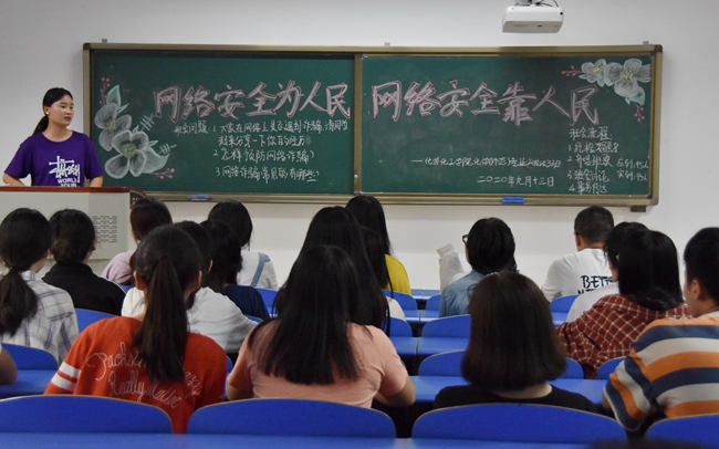 为了加强网络安全教育,营造安全、健康、文明、和谐的网络校园。9月13日下午17时20分,化学化工学院于崇礼楼各班教室开展“网络安全为人民,网络安全靠人民”主题班会。化学化工学院2018级政治辅导员王咏梅、2019级政治辅导员覃小艳、2018级、2019级全体学生参与此次班会。