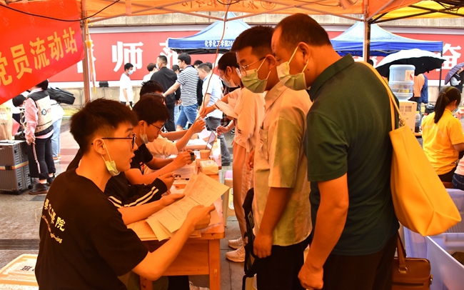 迎新工作井然有序地开展着,化工院领导也纷纷来到迎新地点进行巡视。院领导们认真询问迎新工作的具体进程,并对相关工作进行指导与要求,还亲切地慰问了志愿者,并为他们的志愿奉献精神点赞。