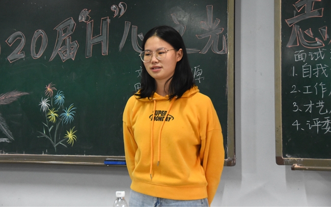 为了强化我院学子思想道德建设和志愿服务精神,让更多2020级学生投身于志愿者服务,10月16日下午17时,筹备已久的2020届“H(氢)心之光”志愿者服务团面试活动在诚意楼208,209正式开始。此次活动由2020届团委学生组织执行主席周海梅、汪炼,2019届实践部副部长姜雪、盛李,2020届实践部部长田美妮,副部长周思宇、付能祥担任评委,部分2020级学生参加。