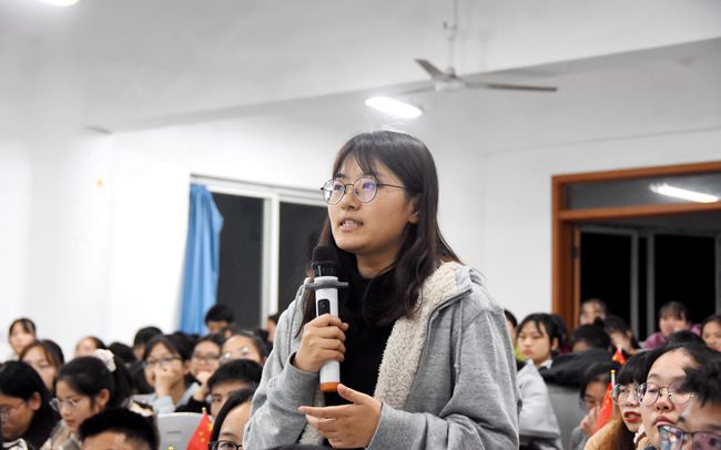 讲座伊始,张丽老师向同学们提出“为什么争做学生骨干”的问题。同学们经过激烈的讨论,积极分享了自己的感悟和看法。其中,廖凌姗同学谈到自己加入团委学生组织的初心和对自己美好未来的期望,充分体现了我院学子积极进取的精神。随后,张丽老师通过分析我院优秀学子的实例对同学们提出以下要求:作为学生骨干必须具有正确的价值观、进取心和责任心,同时也需要较好的执行力和团队合作精神,为组织建设奉献力量。最后,张丽老师为同学们送上寄语:方向比努力更重要,知识比文凭更重要,能力比知识更重要,情商比智商更重要,希望同学们能够明确发展方向并为之奋斗,通过大学的平台成就更加广阔的人生。