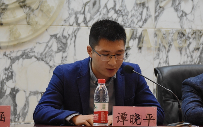紧接着,谭晓平老师进行经验分享。他谈到,同学们在大学生活中,不仅要学会主动学习,自觉遵守学院的规章制度,也要发展兴趣爱好,丰富业余生活充实自己。