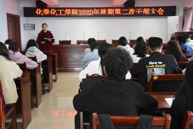 为提高我院学生骨干的综合素质,明确其工作职责,11月7日中午12时20分,化学化工学院于至安楼(北)602会议室开展2020年秋期第二次干部大会。化学化工学院党总支书记庞向东、团委学生组织全体成员以及2020级全体班长、团支书参与此次会议。