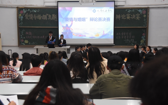 为锻炼我院学子的思维能力以及临场应变能力,提高他们的语言表达能力, 11月17日晚19点,化学化工学院于正心楼01阶梯教室举行“爱情与婚姻”主题辩论赛。此次比赛由2018级政治辅导员王咏梅、2019级政治辅导员覃小艳、团委学生组织执行主席张棋军、团委副书记徐远娟担任评委,2019级、2020级部分同学参与。