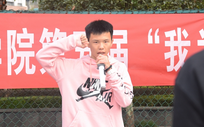随后,庞向东书记发言致辞。他对各同学们提出要求:一是提醒参赛同学在比赛过程中注意安全;二是希望同学们在比赛过程中,做到友谊第一、比赛第二。此外,他还谈到,此次篮球比赛为热爱篮球的同学提供了一个展示自我、切磋球技的平台,希望同学们能抓住锻炼机会,在比赛中充分发挥展现我院学子团结合作的精神。
