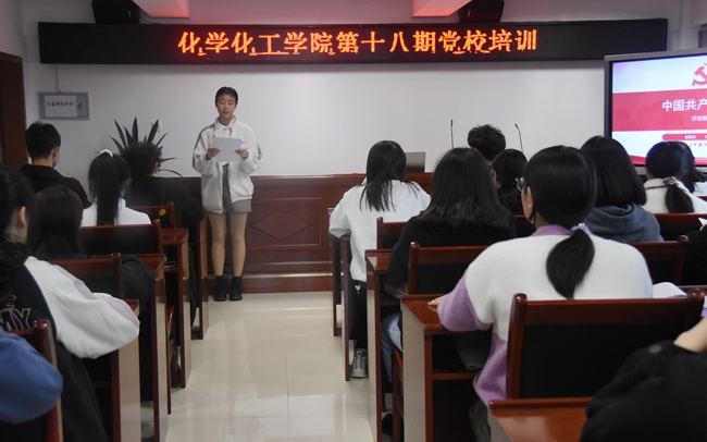 为提升我院学子的党性修养,提高他们的政治觉悟,11月20日下午16时,化学化工学院于至安楼(北)602会议室开展主题为“学党章,做合格共产党员”第十八期党校培训讲座。此次讲座由化学化工学院团委书记赵艳杰老师主讲,2020级部分入党积极分子参加。