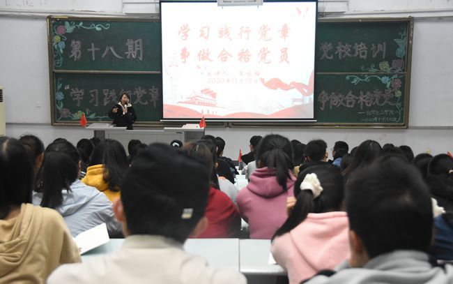 为帮助我院入党积极分子深入了解党章,提高其政治意识,11月18日19时,化学化工学院于正心楼01阶梯教室开展了以“学习践行党章,争做合格党员”为主题的第十八期党校培训。此次培训由2018级政治辅导员王咏梅主讲,2018级、2019级、2020级部分入党积极分子参与。