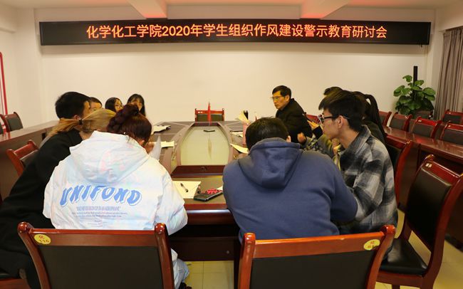 为深入贯彻落实全国学联二十七大精神,用先进理论武装我院团委学生组织头脑,对其后续工作开展进行指导,化学化工学院于11月24日晚19时开展2020年学生组织作风警示教育会。化学化工学院党总支书记庞向东、团委书记赵艳杰、2018级政治辅导员王咏梅、团委学生组织全体成员参与此次会议。
