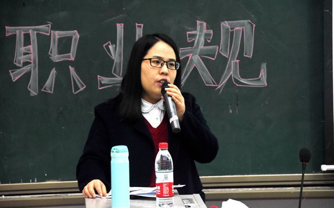 讲座伊始,张丽老师结合自身教学经历向同学们传授就业经验。她谈到,同学们需尽早明确职业目标,积极了解目前的考研及就业形势,认清现实、准确定位,做出正确的选择。随后,张老师还强调,同学们在大学期间不仅要重视英语四六级、计算机、普通话等硬件证书的考取,也要注重个人综合素质的锻炼与提升。最后,张丽老师为同学们送上四句寄语:方向比努力重要,知识比文凭重要,能力比知识重要,情商比智商重要。