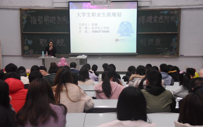 为让我院学子明确职业生涯规划的意义,提高其就业技能,11月30日晚上19时,化学化工学院于正心楼01阶梯教室开展“指引前进方向,搭建金色阶梯”职业规划讲座。此次讲座由化学化工学院2017级政治辅导员张丽主讲,2018级、2019级部分学生参与。