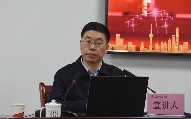 为深入学习贯彻党的十九届五中全会精神,加强我院师生的思想意识,12月11日上午10时10分,长江师范学院校长蔡家林莅临我院于格律楼3101会议室开展党的十九届五中全会精神宣讲会。此次宣讲会由长江师范学院校长蔡家林担任主讲人,化学化工学院党总支书记庞向东主持,化学化工学院领导及现代农业与生物工程领导带领相关教职工及部分学生参与。