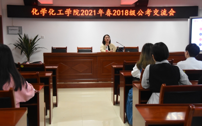 为让我院2018级学生更加了解公考,帮助其进一步明确目标,4月24日下午17时,化学化工学院于至安楼(北)602会议室开展了2021年春2018级公考交流会。此次交流会由化学化工学院2019届团委学生会副主席谭茜担任主讲人,化学化工学院2018级部分学生参与。