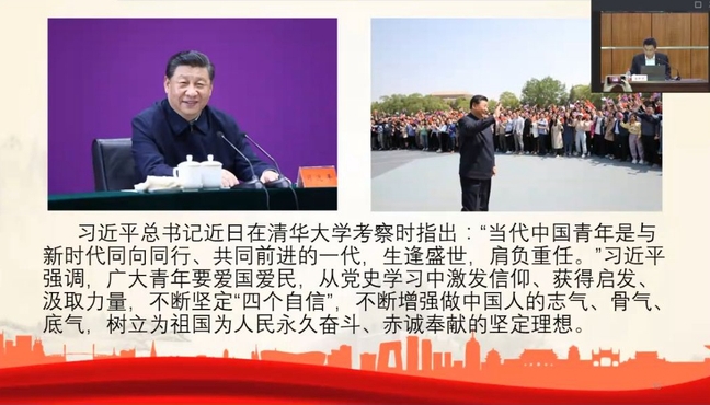 为积极贯彻习近平总书记提出的“学党史、悟思想、办实事、开新局”的总体要求,深入加强党史教育,4月27日上午10时至12时,化学化工学院号召团委学生组织全体成员于钉钉集中学习了由团市委特别邀请的党史学习教育市委宣讲团成员、重庆第二师范学院马克思主义学院院长黄邦道教授主讲的党史教育课。