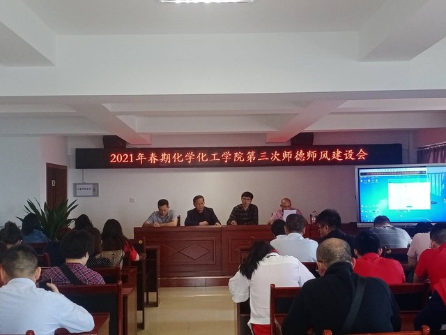 为深入学习贯彻习近平总书记关于教育的重要论述和教师队伍建设的重要指示精神,加强师德师风建设,落实立德树人根本任务,提高教师队伍的“规律、规矩、规则”意识,打造风清气正的教育生态,化学化工学院于2021年5月28日在至安(北)楼602召开第三次师德师风建设会,化学化工学院副院长石文兵主持会议,全体教职工参会。