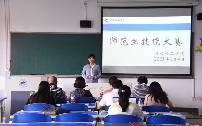 为进一步增强我院师范生实践应用能力与创新能力,彰显化学师范特色,强化教学技能。6月4日中午12时,化学化工学院于诚意楼403、404、405教室举办了2018级师范生技能大赛。本次比赛由化学化工学院党总支书记庞向东、教学副院长石文兵、科研副院长黄辉胜、化学系主任何树华、基础化学系主任张福兰、谭建红教授、刘艳教授担任评委,2018级部分学生参加。