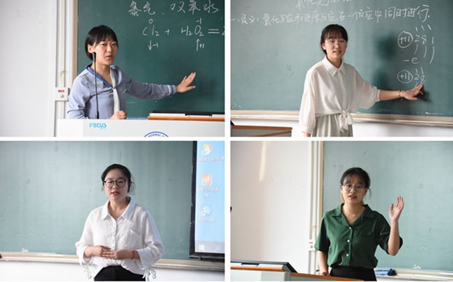 本次比赛分为现场制作课件、教学设计,即兴演讲,模拟课堂教学,评委点评四个环节。在即兴演讲环节中,我院学子紧紧围绕主题,条理清晰、层层递进地对当下教育热点问题展开阐述,获得评委的一致好评。紧接着,在模拟教学环节中,参赛学生从“氧化还原反应”教学内容的特点与难点出发,以巧妙的教学设计攻破教学难点,将学生初高中所学的氧化还原知识有机结合,展开了一堂堂生动的教学,充分展现了我院师范生过硬的专业素养。评委们通过对参赛选手的即兴演讲、教学设计、板书设计、教态、语言表达等多方面进行考察,最终评选出姜雪、阳籼、郑诗瑶获得本次比赛一等奖,欧阳强帅等四名同学获得二等奖,被推至学校进行进一步选拨。