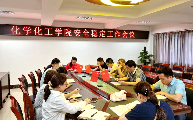 为落实安全主体责任,加强针对性工作措施,全面排查安全隐患,切实保障我院师生的生命安全,6月18日上午10时30分,化学化工学院于至安(北)楼607会议室召开安全稳定工作会。本次会议由化学化工学院党总支书记庞向东主持,学院处科级干部、党支部书记、辅导员、实验教学中心全体成员参加。
