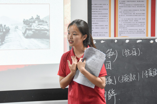 本次红色故事分享会在现场所有志愿者以及小朋友齐唱少先队员之歌中拉开了帷幕。接着,志愿者带领小朋友观看了一段“抗美援朝”动画视频,为他们介绍了中国历史上的“抗美援朝”事件及其重要意义。随后,志愿者详细讲解了抗美援朝战争中英雄先辈们不畏艰险、保卫和平的英勇事迹,向小朋友们宣传了先辈们坚贞不屈、不畏强暴的精神气节。最后,志愿者向小朋友们提出殷切希望:“作为新时代青少年,应该积极学习党史,从红色故事中汲取知识与力量,积极成才为国争光。”
