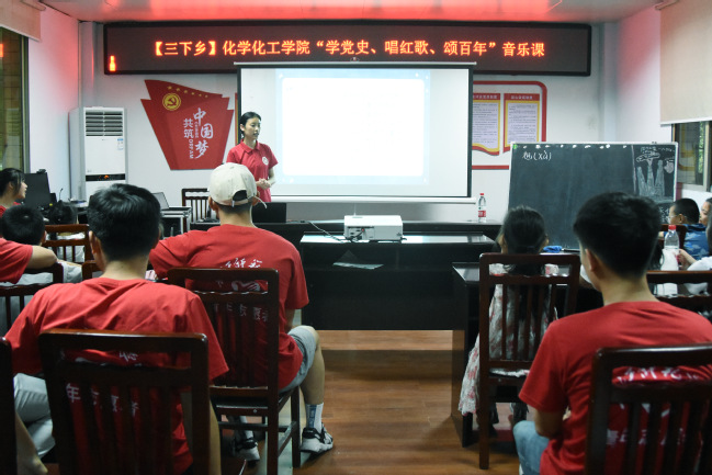 为庆祝建党百年华诞,歌颂百年辉煌党史,传承红色基因,7月12日上午10时,长江师范学院化学化工学院2021年暑期“三下乡”党史学习实践团于涪陵区双河口社区开展了以“学党史、唱红歌、颂百年”为主题的音乐课。