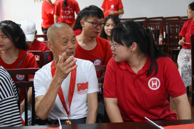 7月14日下午16时,化学化工学院2021年暑期“三下乡”党史学习实践团邀请涪陵区双河口社区老党员张龙驹同志分享红色故事。