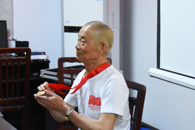 张龙驹同志,已经83岁高龄,拥有着61年的党龄,1965年参与过抗美援越战争。虽然已经年至耄耋,张龙驹老人仍是满面春光,神采奕奕,他身着建党一百周年纪念T恤,胸前的一枚“光荣在党50年”纪念勋章深深地吸引了志愿者的眼球。张龙驹老人对抗美援越战役仍然记忆犹新,他激动地说道:“那个年代,国际情势不稳定,国家派我们前往越南作战,我毅然决然地自荐前往,并担任一名炮兵。”张龙驹老人声情并茂地为志愿者讲述他军旅时期的激战故事,一幅抗美援越的历史长卷慢慢浮现在志愿者的心里,同时内心也充满了对历史、革命先辈的崇敬。