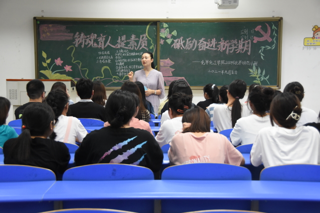 新学期、新气象。为引导学生明确本学期学习任务,确定学习目标,9月5日下午18时10分,化学化工学院于崇礼楼各班教室开展了以“铸魂育人提素质,唱响青春奋斗主旋律”为主题的班会。化学化工学院2020级政治辅导员赵艳杰、邓中燕,2019级政治辅导员覃小艳以及各班班导师,2019级、2020级全体学生参与此次班会。