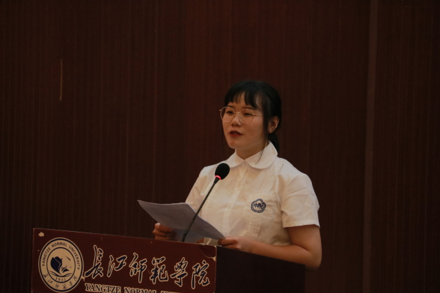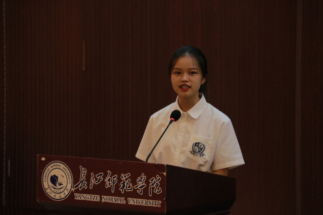 接着,学生代表戴梦鸥分享了大学以来的经验。她谈到,大学生活是一个全新的体验,是生命中最崭新、最能展现个性的几年,愿新生能不负时光,努力前行。