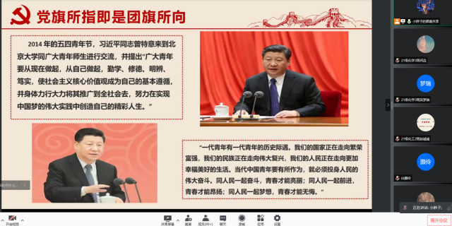 紧接着,赵艳杰老师以习近平总书记在北京大学的讲话为引展开讲述:作为新时代的青年,同学们的个人志向应当向党的方向看齐,做到坚持知行合一,主动担当作为。