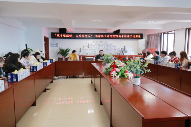 为帮助我院考研学子舒缓心理压力,积极迎考,12月14日下午3时,化学化工学院于至安楼(北)602会议室开展了以“寒冬送温暖,心系考研人”为主题的为2022届考研学子送温暖活动。本次会议由2018级政治辅导员王咏梅主持,化学化工学院教学副院长石文兵、科研副院长黄辉胜、化学工程与工艺主任高枫以及2018级考研学子共同参与。