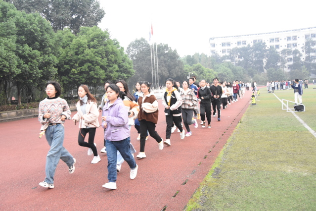 早上7时20分,各班同学在体育委员带领下于行知体育场国旗台前集合,在工作人员清点人数后,各班级沿着规定路线开始跑操。在跑操过程中,同学们始终保持步伐一致、队列整齐,展现出我院学子积极进取、昂扬向上的精神风貌。同时,工作人员在跑操中对各班的跑操纪律、考勤人数、整齐度、精神面貌等进行评分,对表现良好的班级进行奖励,鼓舞同学们积极投入到本次活动中,达到活跃身心,锻炼身体的活动预期目的。