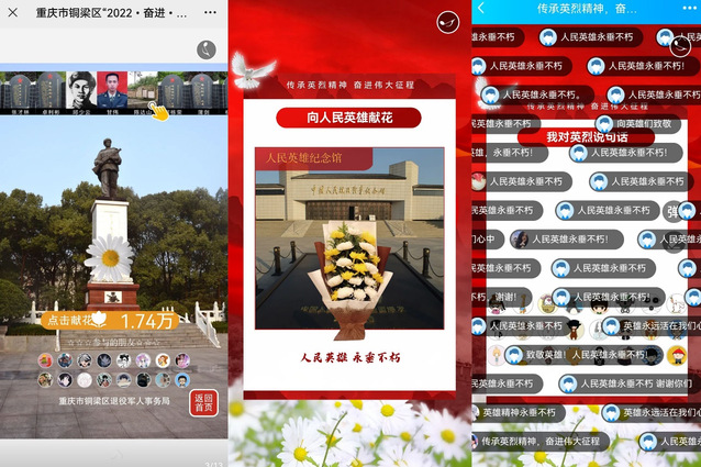 此次网上祭祀活动以中国英烈网、市退役军人事务局微信公众号“重庆英烈纪念馆”、“涪陵网上英烈纪念馆”为主要平台,通过在线前往到平台中的革命英烈照片墙,我院师生党员为墙上的英烈鞠躬、上香以示敬意。在祭祀过程中,我院师生党员纷纷回望党的百年历程,表达了对英烈们的深刻缅怀,并向他们抒写了自己感言的寄语,表示在未来的发展道路中,定当保持着开拓进取、奋发有为的精气神,攻坚克难,在新的征程上慨然前行。活动的最后,我院师生党员还自发地去到了平台中的人民英雄纪念碑、抗日战争纪念馆、人民英雄纪念馆等界面,为每一位中华英雄儿女献上花篮。