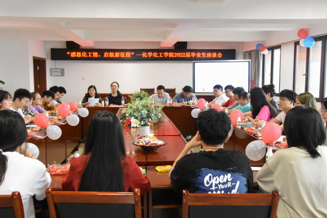 为让我院2022届毕业生再次感受学院这个家庭的温暖,给他们留下一篇美好的大学回忆,6月1日16时,化学化工学院于至安楼(北)602会议室开展了以“感恩化工情,启航新征程”为主题的2022届毕业生座谈会。化学化工学院团委书记赵艳杰、化学系主任何树华、化学工程与工艺系主任高枫、袁斌芳博士以及2018级部分学生参与此次会议。