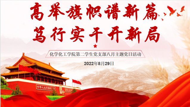 为深入学习习近平总书记重要讲话精神,以优异的成绩迎接党的二十大,鼓励支部党员同志在新时代新征程上踔厉奋发、笃行不怠,奋力谱写全面建设社会主义现代化国家崭新篇章。化学化工学院第二学生党支部于2022年8月29日15:00在腾讯会议上召开“高举旗帜谱新篇,笃行实干开新局”为主题的8月主题党日活动,会议由党支部书记覃小艳同志主持,第二学生党支部全体党员同志参与。
