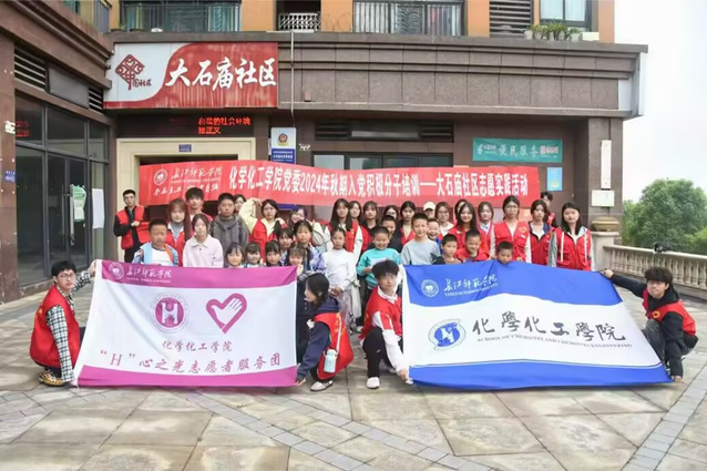 为深入学习贯彻习近平新时代中国特色社会主义思想,发扬“奉献、友爱、互助、进步”的志愿服务精神,强化入党积极分子的初心使命意识,提高奉献精神和服务意识。2024年11月2日,化学化工学院党委开展“红心向党践初心,志愿服务暖人心”大石庙社区志愿实践活动,化学化工学院部分志愿者及部分入党积极分子参加。
