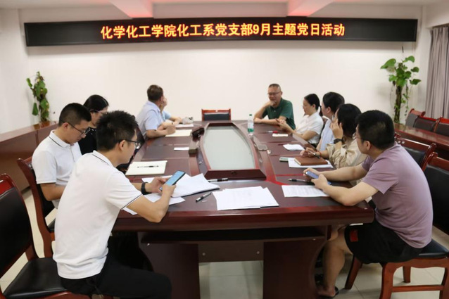 为深切缅怀革命先烈的不朽功勋,大力弘扬以爱国主义为核心的伟大抗战精神,进一步激发支部党员的爱国热忱与民族使命感,引导党员同志从历史深处汲取奋进力量,在新时代新征程中担当践行报国之志。化工系党支部于2025年9月19日11:00在至安楼(北)607开展了以“铭记历史、缅怀先烈、珍爱和平、开创未来”为主题的党日活动。本次活动由支部党员王彬雪同志主持,化工系党支部部分成员参会。