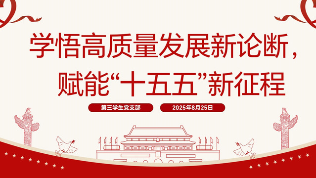 为推动“十五五”新征程的实际行动,强化责任担当,发挥先锋模范作用,助力高质量发展凝聚力量,2025年8月25日16时,化学化工学院第三学生党支部于腾讯会议开展了以“学悟高质量发展新论断,赋能‘十五五’新征程”为主题的党日活动。会议由化学化工学院第三学生党支部书记邓中燕同志主持,第三学生党支部全体学生党员参与。