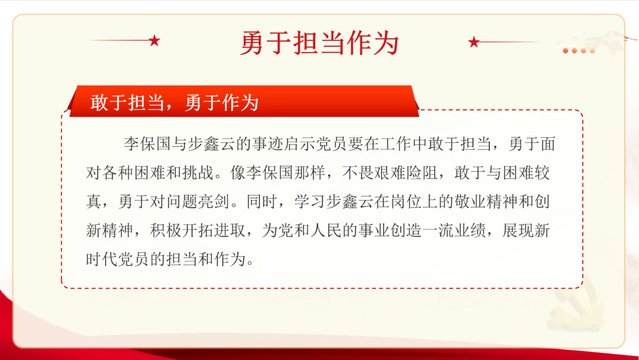 会议伊始,支部党员李秋苹同志分享党史小故事——《创新驱动 时代先锋》。她讲述了时代先锋李保国与步鑫生,以不同姿态诠释了共产党人的担当与实干的故事。“太行新愚公”李保国,三十五年扎根深山,笃行“把论文写在大地上、刻进农民饭碗里”,直至生命最后一刻仍在奔忙,用生命践行科技扶贫誓言,诠释无私奉献。“改革先锋”步鑫生,勇立潮头、锐意革新,以敢闯魄力激活企业,展现解放思想、攻坚克难的担当。同时也启示了党员应该立足新征程,当以榜样为镜,将小我融入大我,以创新思维、务实行动,为民族复兴贡献奋进力量。