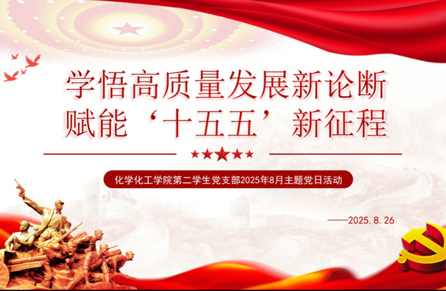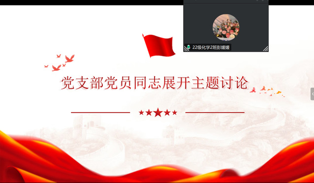 为深入学习贯彻党的二十大精神,聚焦“十五五”规划目标任务,深刻领会高质量发展的核心要义与实践要求,切实筑牢党员思想根基,激发奋进合力。2025年8月26日晚上19时00分,化学化工学院第二学生党支部于腾讯会议开展了“学悟高质量发展新论断 赋能‘十五五’新征程”主题党日活动。党支部书记覃小艳出席并主持此次会议,第二学生党支部成员全体参会。