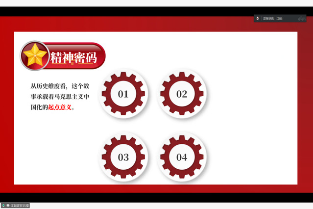 最后,第二学生党支部书记覃小艳同志做出总结。她强调,重温建党历程,关键在于将精神力量转化为实干动力。同时,她要求全体党员同志持续深化理论学习,把党史学习融入日常生活学习中,从建党精神中汲取信仰养分;严守作风底线,以八项规定精神为标尺,筑牢思想防线,树立良好风气。