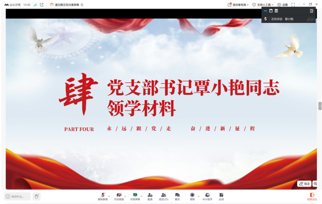 随后,党支部书记覃小艳同志带领大家学习了《习近平总书记在中共中央举行纪念陈云同志诞辰120周年座谈会上的重要讲话精神》,她指出陈云同志在党和国家的不同发展阶段都发挥了关键作用,是党的第一代和第二代中央领导集体的重要成员,为党和人民事业发展作出了不可磨灭的重大贡献。同时,她要求全体党员深刻领会习近平总书记重要讲话精神,将陈云同志的崇高精神、丰富经验和科学方法融入日常工作与生活中,不忘初心、牢记使命,在各自岗位上发光发热,为推动党组织发展和社会主义事业进步贡献力量。
