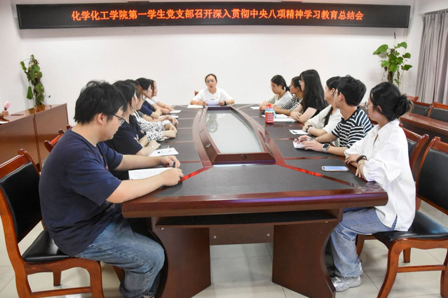 为深入贯彻中央八项精神,引导党员铭记历史、传承红色基因,2025年9月18日下午18时,化学化工学院第一学生党支部于至安楼(北)607会议室组织开展“铭记历史、缅怀先烈、珍爱和平、开创未来”主题党日活动。此次会议由第一学生党支部书记黎兰同志主持,全体学生党员参与。
