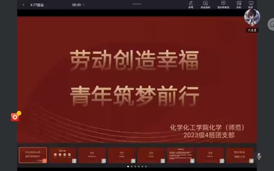 习近平总书记曾指出:“劳动创造了中华民族,造就了中华民族的辉煌历史”为深入贯彻落实习近平总书记关于劳动的重要论述,4月27日16时30分,化学化工学院于腾讯会议召开以“劳动创造幸福,青年筑梦前行”为主题的团会,全体学生参与。