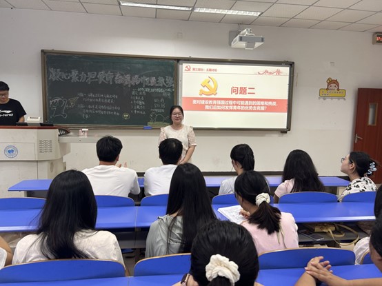 班会伊始,主持人指出,青年是推进教育现代化的先锋力量,必须牢牢把握时代赋予的责任,以青春之姿投身教育强国建设。随后,在主题讨论环节中,同学们围绕“青年如何通过具体行动助力教育强国建设”、“面对建设教育强国过程中遇到的问题,我们应如何克服”等问题展开讨论,旨在帮助同学们更加明确自己在教育强国建设中的角色,为国家的教育事业贡献自己的力量。
