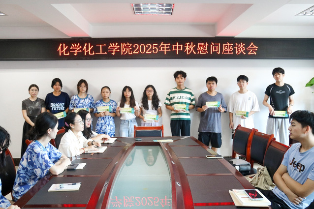 为赓续中华优秀传统文化,将学院的关怀与温暖传递至困难学子心中,9月29日12时30分,化学化工学院于至安楼(北)607会议室开展了2025年中秋慰问座谈会。化学化工学院学工办副主任兼团委副书记覃小艳、2022级政治辅导员邓中燕、2025级政治辅导员黎兰以及部分困难学生参与此次会议。
