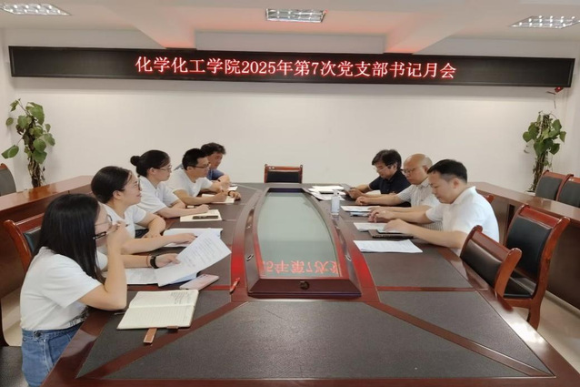 为深入学习领会习近平总书记关于党的建设的重要思想,2025年7月10日下午19:00,化学化工学院党委在至安北楼607会议室召开化学化工学院2025年第7次书记月会,会议由化学化工学院党委书记石文兵主持。