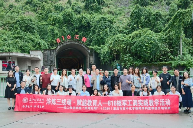 为深化“市培计划”(2025)重庆市高中化学教师学科素养提升培训实效,将红色文化与学科教学深度融合,近日,长江师范学院化学化工学院组织本期培训班学员赴816核军工洞,开展“淬炼三线魂·赋能教育人”主题实践教学活动,让教师们在沉浸式体验中感悟三线精神,汲取教育教学创新灵感。