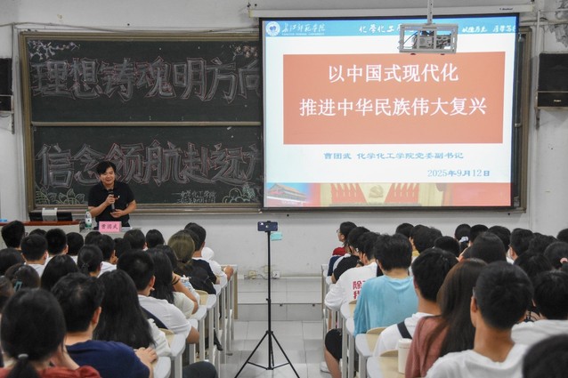 为引导青年学子筑牢理想信念之基,深刻理解时代责任,9月12日16时30分,化学化工学院于格理楼04阶梯教室开展以“理想铸魂明方向,信念领航赴远方”为主题的2025级新生入学教育讲座。该讲座由化学化工学院党委副书记曹团武主讲,2025级全体新生参与。