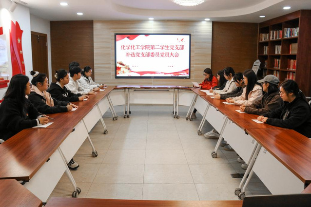 为夯实党的基层组织建设,充分发挥党支部的战斗堡垒作用,化学化工学院第二学生党支部于2025年10月24日中午12时30分,在南苑八舍一楼党建会议室召开补选支部委员党员大会。此次大会由第二学生党支部书记覃小艳同志主持,支部全体党员参会。