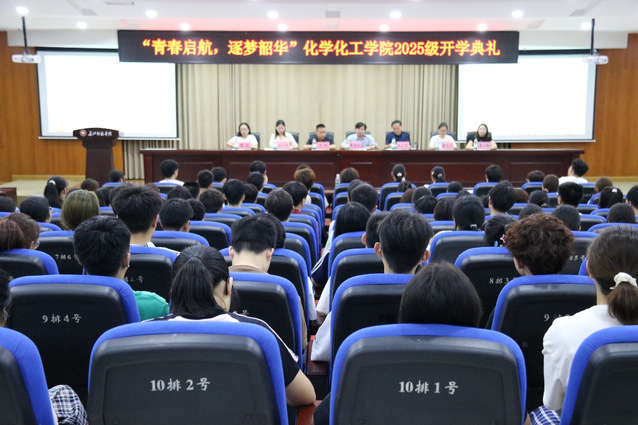 金秋九月,丹桂飘香,硕果盈枝。9月11日8时30分,化学化工学院于鉴湖学术报告厅开展了以“青春启航,逐梦韶华”为主题的2025级新生开学典礼。此次开学典礼由化学化工学院党委副书记曹团武主持,化学化工学院博士生导师俞志刚、化学系主任董文飞、制药工程系主任苟铨、团委副书记覃小艳、2025级政治辅导员黎兰、青年教师代表刘方乘以及2025级全体新生参与。