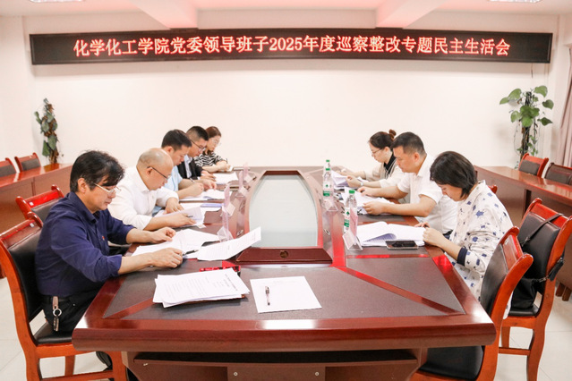 2025年10月14日上午,根据市委教育工委关于巡察整改工作的统一部署,为深入贯彻市属高校第五交叉巡察组的反馈意见,以刀刃向内的自我革命精神检视问题、明确方向、采取措施,化学化工学院党委召开巡察整改专题民主生活会。会议由化学化工学院党委副书记曹团武主持,学校党委巡察办公室主任刘军同志、纪检监察室副主任郑春怡同志、党委组织部组织科科长杨竣淇同志列席,学院党委领导班子及成员全员参会。